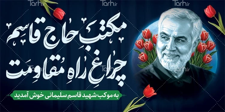 موکب قابل ویرایش سردار سلیمانی با تایپوگرافی مکتب حاج قاسم چراغ راه مقاومت کد فایل 5489071