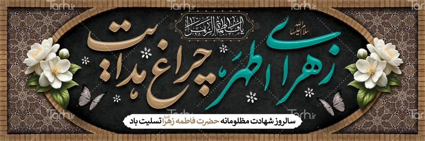 دانلود طرح پلاکارد عزاداری ایام فاطمیه دارای خوشنویسی زهرای اطهر چراغ هدایت کد فایل 5493081