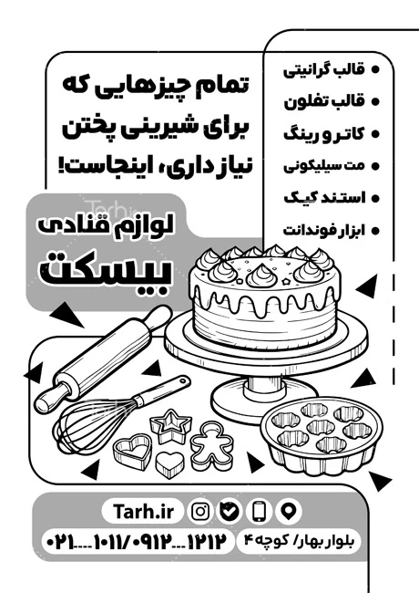 - دسته بندی : تراکت سیاه سفید فروشگاه لوازم قنادی