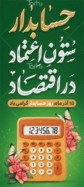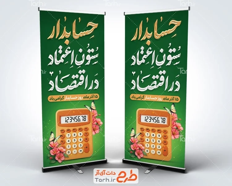 استند لایه باز روز حسابداری با فرمت psd و قابل ویرایش در نرم افزار فتوشاپ به صورت لایه باز توسط تیم طراحان طرح دات آی آر طراحی شده است. در طرح لمپوست روز حسابدار از تصاویر و المان های با کیفیت و متناسب با استاندارد چاپ استفاده گردیده است. طرح لایه باز بنر ایستاده روز حسابدار شامل خوشنویسی حسابدار ستون اعتماد در اقتصاد، وکتور ماشین حساب، گل و پروانه می باشد که المان های استفاده شده در بنر خام روز حسابدار قابلیت ویرایش، جابه جایی و تغییر سایز را دارا بوده و شما می توانید متناسب با سلیقه خودتان دانلود بنر استندی روز حسابدار را ویرایش نمایید.