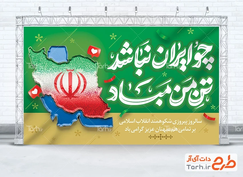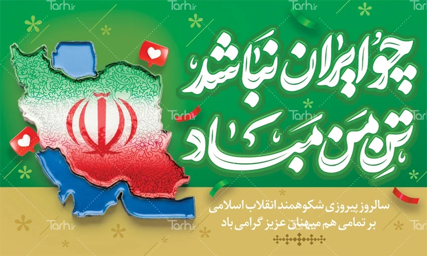 طرح بنر دهه فجر لایه باز با تایپوگرافی چو ایران نباشد تن من مباد کد فایل 5682341