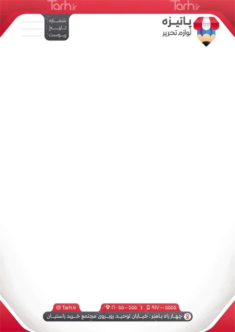 دانلود طرح سربرگ لوازم تحریری با فرمت psd و قابل ویرایش در نرمافزار فتوشاپ بهصورت لایه باز توسط تیم طراحان طرح دات آی آر طراحی شده است. در طرح لایه باز سربرگ لوازم التحریر از المانهای باکیفیت و متناسب با استاندارد چاپ استفادهشده، همچنین نکات مهم در طرح سربرگ خام فروشگاه لوازم تحریر مانند رنگبندی، رعایت حاشیه، فاصلهها، فضای کافی برای درج متن، سایز و نوع فونت مناسب طراحی سربرگ و ... رعایت گردیده است. سربرگ لایه باز کتابفروشی شامل لوگو فروشگاه لوازم تحریر و محل جایگذاری مشخصات میباشد که المانهای استفادهشده در نمونه سربرگ فروش نوشت افزار قابلیت ویرایش، جابهجایی و تغییر سایز را دارا بوده و شما میتوانید متناسب باسلیقه خودتان طرح سربرگ لوازم التحریر و کتابفروشی را ویرایش نمایید، همچنین با تغییر لوگو و متنها میتوانید طرح سربرگ فروشگاه لوازم التحریر را به طرح سربرگ کسب و کار مد نظر خود شخصی سازی نمایید. در اسناد و نامههای اداری و تجاری، سربرگ به عنوان وسیلهای برای نمایش اطلاعاتی مانند نام و لوگو یک شرکت یا سازمان، عنوان سند، تاریخ، شماره صفحه و اطلاعات تماس ( شماره تلفن، آدرس پستی، وبسایت و ایمیل) به کار میرود. این اطلاعات به دریافتکننده کمک میکند تا به راحتی با شرکت یا سازمان تماس بگیرد یا از منابع اطلاعاتی بیشتری بهرهبرداری کند.