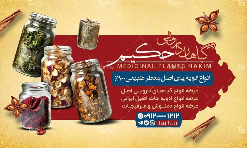 بنر خام عطاری و دارو گیاهی با فرمت psd و قابل ویرایش در نرمافزار فتوشاپ بهصورت لایه باز توسط تیم طراحان طرح دات آی آر طراحی شده است. در طرح لایه باز بنر عطاری از تصاویر و المانهای باکیفیت و متناسب با استاندارد چاپ استفاده شده، همچنین نکات مهم در طرح بنر مشاغل مانند رنگبندی، رعایت حاشیه، فاصلهها، سایز و نوع فونت مناسب طراحی تابلو مشاغل و ... رعایت گردیده است. طرح بنر عطاری شامل عکس ادویه ها میباشد که المانهای استفاده شده در طرح تابلو عطاری و گیاهان دارویی قابلیت ویرایش، جابهجایی و تغییر سایز را دارا بوده و شما میتوانید متناسب باسلیقه خودتان طرح بنر تبلیغاتی عطاری را ویرایش نمایید، همچنین با تغییر تصاویر و متنها میتوانید طرح تابلو عرقیجات گیاهی را به طرح تابلوی شغل موردنظر خود تبدیل نمایید.