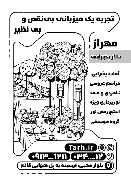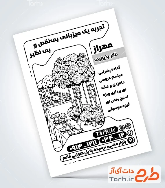 - دسته بندی : تراکت سیاه سفید تالار پذیرایی