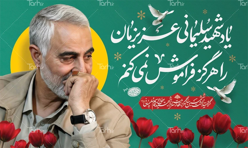 بنر لایه باز سالگرد سردار سلیمانی با عکس حاج قاسم کد فایل 5720614