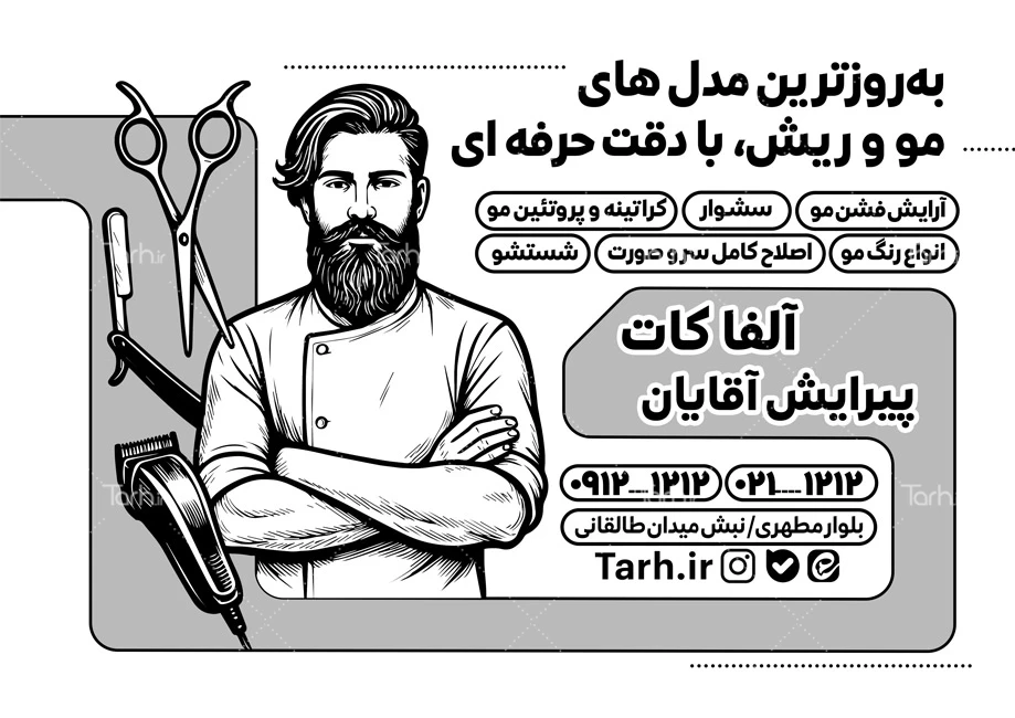 - دسته بندی : تراکت سیاه سفید آرایشگاه مردانه