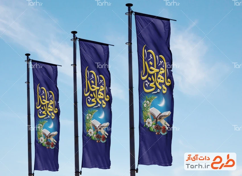 طرح پرچم عمودی ماه رمضان با فرمت psd و قابل ویرایش در نرم افزار فتوشاپ به صورت لایه باز توسط تیم طراحان طرح دات آی آر طراحی شده است. در طرح استند و لمپوست ماه رمضان از تصاویر و المان های با کیفیت و متناسب با استاندارد چاپ استفاده گردیده است. طرح لایه باز پرچم عمودی ماه رمضان شامل خوشنویسی ماه مهمانی خدا، عکس قرآن کریم، استکان چای، خرما و وکتور ماه می باشد که المان های استفاده شده در طرح پرچم پل رمضان قابلیت ویرایش، جابه جایی و تغییر سایز را دارا بوده و شما می توانید متناسب با سلیقه خودتان طرح بنر شهری حلول ماه رمضان را ویرایش نمایید.
