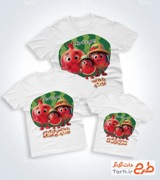 طرح لایه باز تیشرت یلدا ست خانوادگی دارای تصویرسازی انار کد فایل 5748921