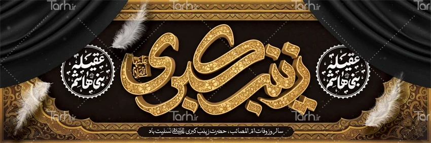 فایل لایه باز پلاکارد رحلت حضرت زینب با تایپوگرافی عقیله بنی هاشم کد فایل 5749321
