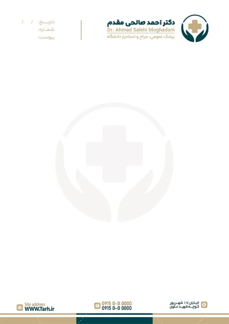 طرح سرنسخه دکتر عمومی و جراح با فرمت psd و قابل ویرایش در نرمافزار فتوشاپ بهصورت لایه باز توسط تیم طراحان طرح دات آی آر طراحی شده است. در طرح سرنسخه پزشک عمومی از المانهای باکیفیت و متناسب با استاندارد چاپ استفادهشده، همچنین نکات مهم در طرح سرنسخه پزشک عمومی مانند رنگبندی، رعایت حاشیه، فاصلهها، فضای کافی برای درج متن، سایز و نوع فونت مناسب طراحی سرنسخه و ... رعایت گردیده است. سرنسخه خام پزشک عمومی شامل وکتور محل جایگذاری اطلاعات بیمار و نام پزشک میباشد که المانهای استفادهشده در طرح سرنسخه دکتر عمومی قابلیت ویرایش، جابهجایی و تغییر سایز را دارا بوده و شما میتوانید متناسب باسلیقه خودتان طرح سر نسخه پزشک را ویرایش نمایید، همچنین با تغییر لوگو و متنها میتوانید طرح سرنسخه جراح عمومی را به طرح سربرگ دکتر مد نظر خود شخصی سازی نمایید. سربرگ نسخه پزشک به عنوان یک قالب یا برگه کاغذی با سربرگ توسط پزشکان و متخصصان پزشکی برای ایجاد نسخههای مختلف، تجویز دارو، اسناد پزشکی و نامههای پزشکی مورد استفاده قرار میگیرد. سربرگ پزشک معمولاً اطلاعات و مشخصات پزشک را دربرمیگیرد و به پزشکان کمک میکند تا ارتباطات خود با بیماران، دیگر پزشکان، و سایر نهادها را به صورت حرفهای و معتبر انجام دهند و اصالت اسناد پزشکی را حفظ کنند.