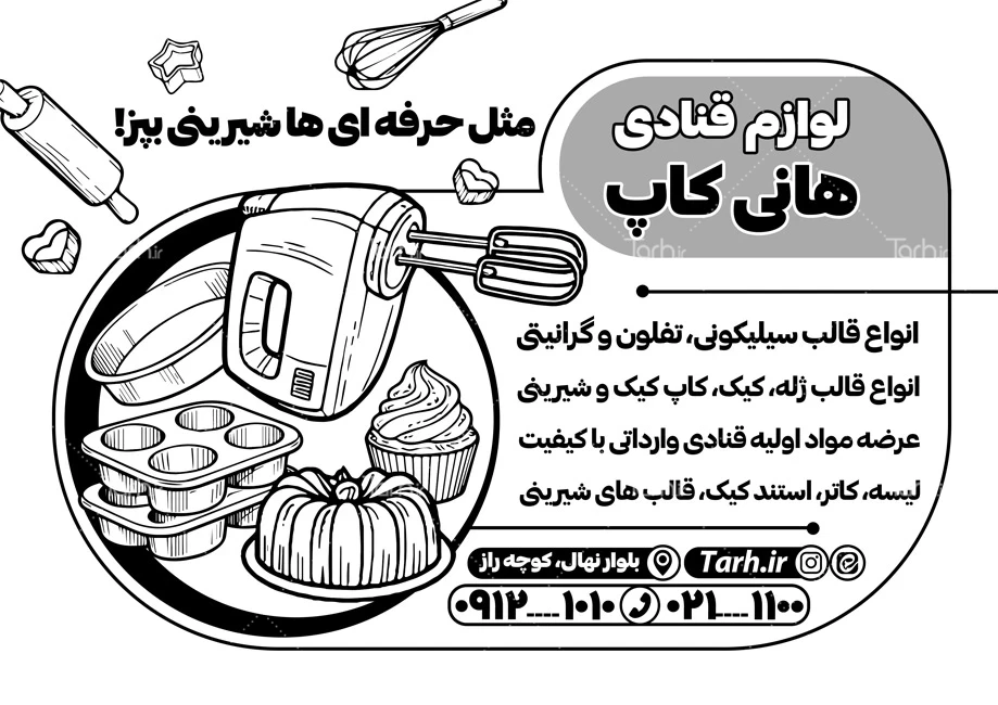 - دسته بندی : تراکت سیاه سفید فروشگاه لوازم قنادی