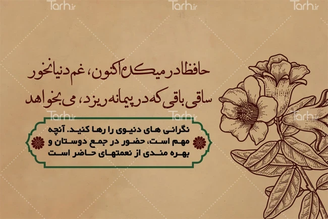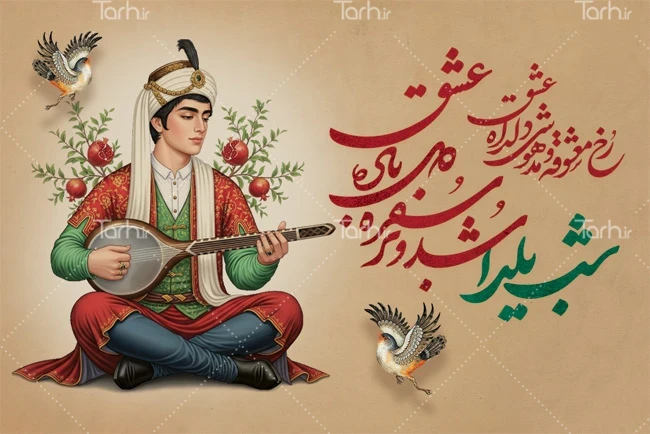 طرح لایه باز کارت فال حافظ هدیه شب یلدا با تایپوگرافی شب یلدا شد و بر سفره دل باده کد فایل 5809621