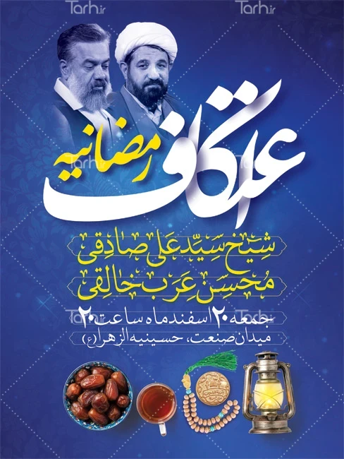 بنر خام اطلاع رسانی اعتکاف رمضان با فرمت psd و قابل ویرایش در نرم افزار فتوشاپ به صورت لایه باز توسط تیم طراحان طرح دات آی آر طراحی شده است. در بنر اطلاعیه اعتکاف ماه رمضان از تصاویر و المانهای با کیفیت و متناسب با استاندارد چاپ استفاده گردیده است. بنر اطلاع رسانی ماه رمضان شامل خوشنویسی اعتکاف رمضانیه، عکس خرما، فانوس و تسبیح می باشد که المانهای استفاده شده در بنر لایه باز اعلامیه ماه رمضان قابلیت ویرایش، جابه جایی و تغییر سایز را دارا بوده و شما میتوانید متناسب با سلیقه خودتان بنر اطلاع رسانی اعتکاف رمضان را ویرایش نمایید.