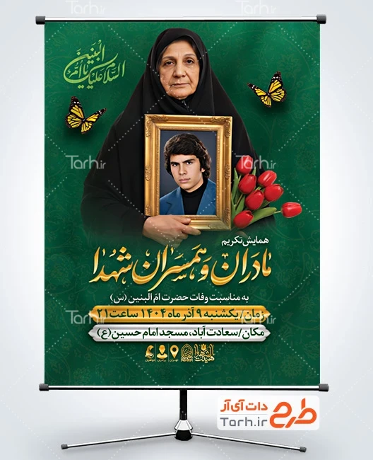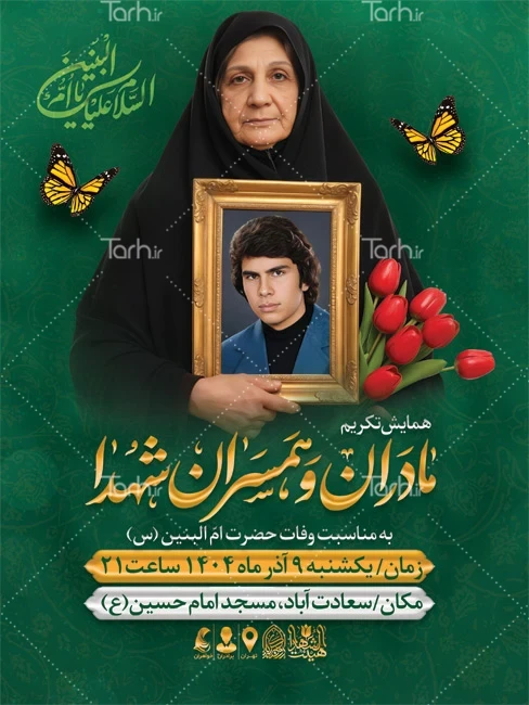 ابعاد قابل چاپ طرح اطلاعیه وفات حضرت ام البنین و تکریم مادران و همسران شهدا و کاربرد آن