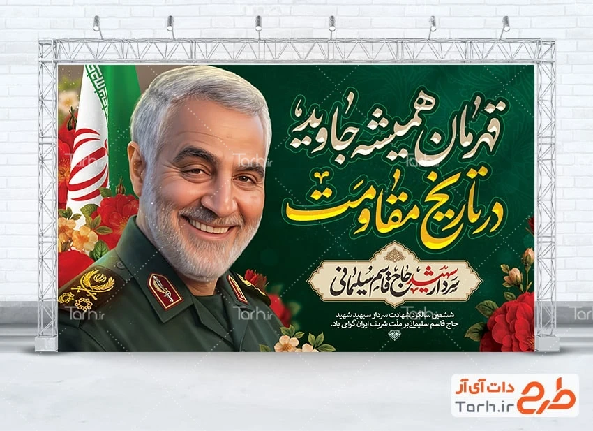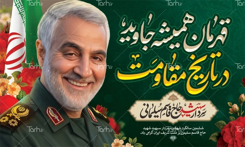 دانلود طرح بنر سالگرد سردار سلیمانی دارای نقاشی دیجیتال سردار سلیمانی کد فایل 5864127