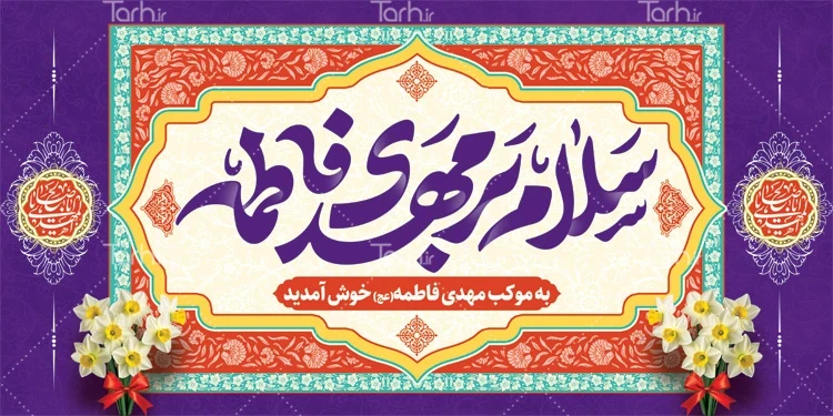 طرح لایه باز موکب نیمه شعبان با تایپوگرافی سلام بر مهدی فاطمه کد فایل 5869413