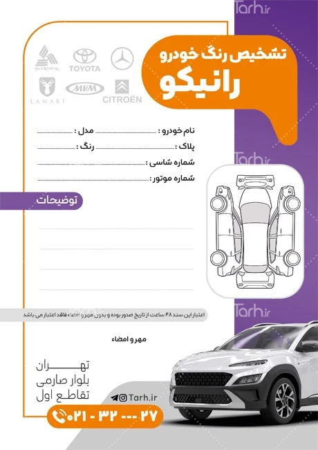 طرح خام تراکت تشخیص رنگ خودرو با عکس ماشین کد فایل 5872063