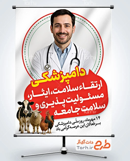 طرح لایه باز بنر روز دامپزشکی با فرمت psd و قابل ویرایش در نرم افزار فتوشاپ به صورت لایه باز توسط تیم طراحان طرح دات آی آر طراحی شده است. در دانلود طرح بنر روز ملی دامپزشکی از تصاویر و المانهای با کیفیت و متناسب با استاندارد چاپ استفاده گردیده است. طرح لایه باز تبریک روز دامپزشک شامل عکس حیوانات و عکس دکتر دامپزشک می باشد. المانهای استفاده شده در طرح بنر روز دامپزشک قابلیت ویرایش، جابه جایی و تغییر سایز را دارا بوده و شما می توانید متناسب با سلیقه خودتان بنر لایه باز روز ملی دامپزشکی را ویرایش نمایید.
