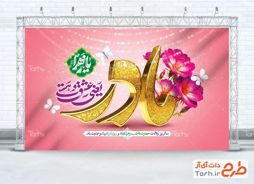 ابعاد قابل چاپ بنر پشت منبری روز زن و ولادت حضرت فاطمه زهرا کاربرد آن