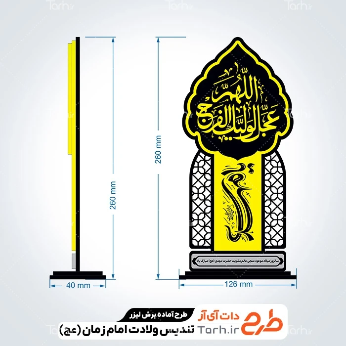 طرح تندیس نیمه شعبان با نرم افزار Corel Draw به صورت لایه باز و قابل ویرایش توسط تیم طراحان طرح دات آی آر طراحی شده است. در طرح لایه باز تندیس روز نیمه شعبان و ولادت امام زمان و طرح لیزر تندیس مذهبی نکات مهم طراحی لیزر مانند رعایت ضخامت چوب، ابعاد استاندارد طرح و چیدمان درست برای کمترین پرتی رعایت گردیده است. طرح برش لیزری تندیس روز نیمه شعبان و ولادت حضرت مهدی، آماده اجرا توسط دستگاه های برش، سی ان سی (CNC)، حکاکی لیزر و حکاکی روی چوب میباشد. شما میتوانید از طرح لیزر تندیس نیمه شعبان جهت تولید انواع تندیس و استند روز نیمه شعبان به عنوان هدیه در مراسمات روز نیمه شعبان و ولادت امام زمان استفاده کنید.