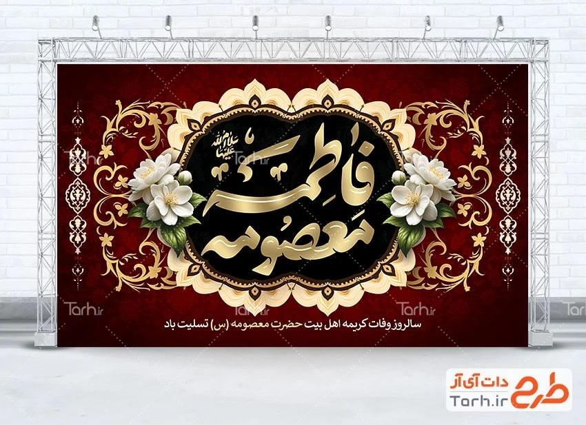 طرح بنر پشت سن وفات حضرت معصومه با فرمت psd و قابل ویرایش در نرم افزار فتوشاپ به صورت لایه باز توسط تیم طراحان طرح دات آی آر طراحی شده است. در پشت منبری لایه باز وفات حضرت معصومه از تصاویر و المان های با کیفیت و متناسب با استاندارد چاپ استفاده گردیده است. طرح بنر پشت منبری وفات حضرت معصومه شامل خوشنویسی فاطمه معصومه می باشد که المان های استفاده شده در طرح بنر لایه باز رحلت حضرت معصومه قابلیت ویرایش، جابه جایی و تغییر سایز را دارا بوده و شما می توانید متناسب با سلیقه خودتان طرح بنر جایگاه وفات حضرت معصومه لایه باز را ویرایش نمایید.