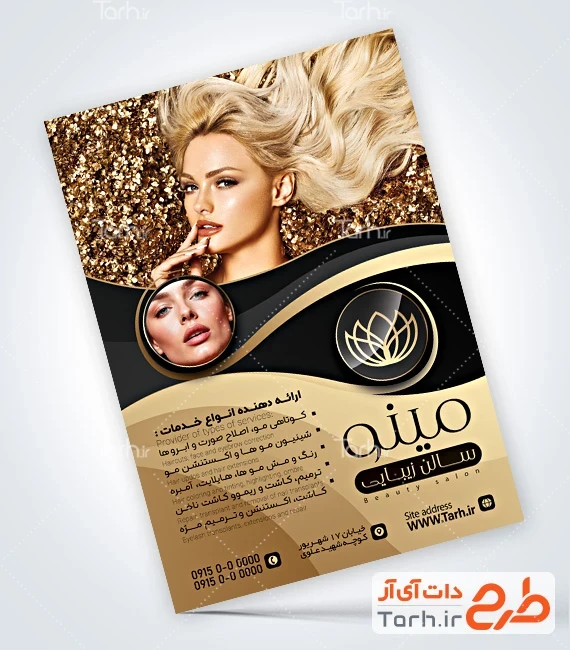 طرح تراکت آرایش و پیرایش بانوان با تم مشکی طلایی کد فایل 5923468