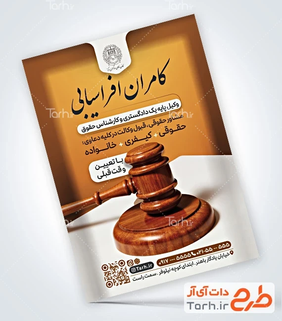 فایل لایه باز تراکت دفتر وکیل با عکس چکش عدالت کد فایل 5941820
