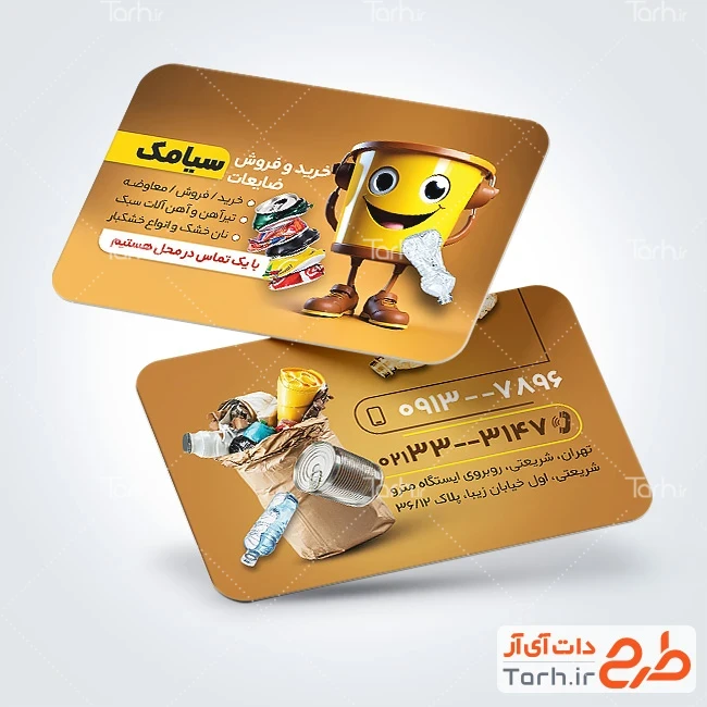 کارت ویزیت قابل ویرایش ضایعات با فرمت psd و قابل ویرایش در نرمافزار فتوشاپ بهصورت لایه باز و پشت و رو (دو رو) توسط تیم طراحان طرح دات آی آر طراحی شده است. طرح کارت ویزیت ضایعات از تصاویر و المانهای باکیفیت و متناسب با استاندارد چاپ استفادهشده، همچنین نکات مهم در طرح کارت ویزیت مانند رنگبندی، رعایت حاشیه، فاصلهها، فضای کافی برای درج متن، سایز و نوع فونت مناسب طراحی کارت ویزیت و ... رعایت گردیده است. نمونه کارت ویزیت ضایعات شامل عکس زباله و جرثقیل میباشد که المانهای استفادهشده در طرح کارت ویزیت ضایعاتی قابلیت ویرایش، جابهجایی و تغییر سایز را دارا بوده و شما میتوانید متناسب باسلیقه خودتان کارت ویزیت لایه باز ضایعات را ویرایش نمایید، همچنین با تغییر تصاویر و متنها میتوانید طرح کارت ویزیت خرید ضایعات و بازیافت را به طرح کارت ویزیت کسب و کار مد نظر خود شخصی سازی نمایید.