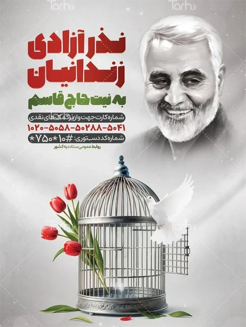 طرح بنر آماده پویش نذر آزادی زندانی در سالروز شهادت سردار سلیمانی کد فایل 5948372