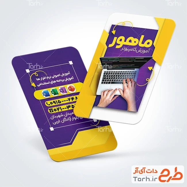 طرح کارت ویزیت آموزش کامپیوتر با تم زرد و بنفش کد فایل 6013859