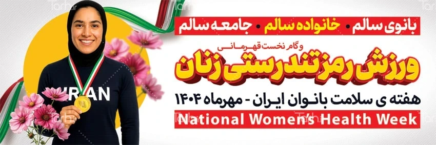 بنر پلاکارد هفته سلامت زنان با فرمت psd و قابل ویرایش در نرم افزار فتوشاپ به صورت لایه باز توسط تیم طراحان طرح دات آی آر طراحی شده است. در طرح لایه باز هفته سلامت بانوان از تصاویر و المان های با کیفیت و متناسب با استاندارد چاپ استفاده گردیده است. طرح بنر هفته سلامت زنان شامل عکس زن ورزشکار، متن ورزش رمز تندرستی زنان، وکتور پرچم ایران و گل می باشد که المان های استفاده شده در بنر لایه باز هفته ملی سلامت زنان قابلیت ویرایش، جابه جایی و تغییر سایز را دارا بوده و شما می توانید متناسب با سلیقه خودتان طرح هفته جهانی سلامت زنان را ویرایش نمایید.