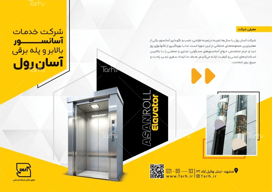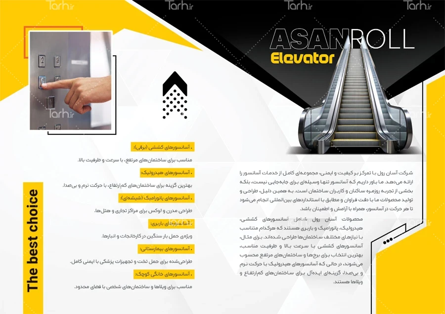 طرح کاتالوگ خام خدمات آسانسور دارای عکس آسانسور و پله برقی کد فایل 6038195