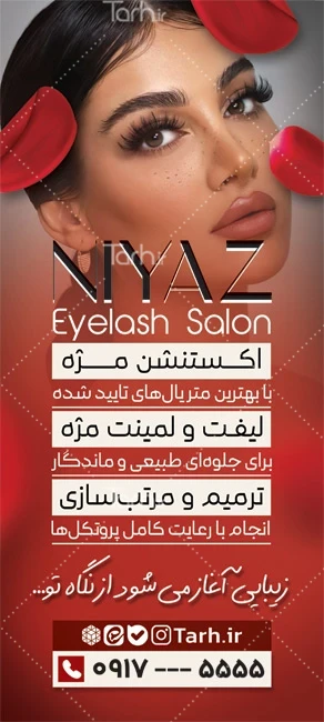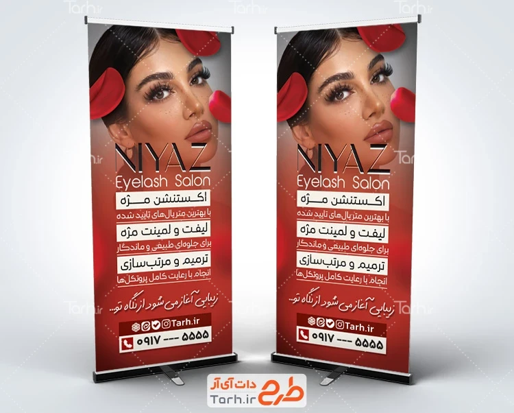 ابعاد بنر ایستاده آرایشگاه بانوان در جدول ویژگی های فایل درج شده با توجه به لایه باز بودن و کیفیت بالای طرح سالن آرایشی و خدمات مژه، قابلیت ویرایش و تبدیل به سایز دلخواه، همچنین چاپ روی متریال های مختلف مانند کاغذ، بنر، فلکس و مش را دارا می باشد. بنر مرکز کاشت مژه با ابعاد 2 در 90، قابلیت چاپ بنر و لارج فرمت تا ابعاد 4 در 2 متر را بدون افت کیفیت دارد، همچنین برای ابعاد بزرگتر نیز در صورتی که فاصله بیننده تا بنر بیشتر از 8 متر باشد، طرح استند خدمات کاشت مژه قابل چاپ و نصب بوده و افت کیفیت به چشم نمی آید. طرح بنر ایستاده مغازه علاوه بر استفاده به عنوان بنر تبلیغاتی در ورودی مغازه ها و اماکن تجاری، به منظور زیباسازی دکور و فضای داخلی کسب و کارها و مغازه ها قابل استفاده می باشد.