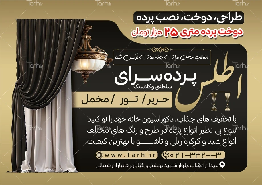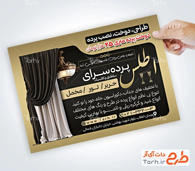 طرح آماده تراکت پرده سرا با رنگبندی مشکی طلایی کد فایل 6071429