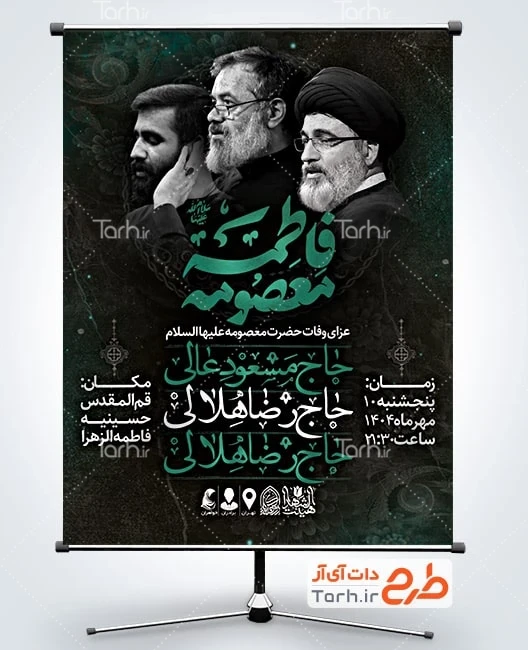 طرح بنر اطلاع رسانی وفات حضرت معصومه با فرمت psd و قابل ویرایش در نرم افزار فتوشاپ به صورت لایه باز توسط تیم طراحان طرح دات آی آر طراحی شده است. در طرح بنر شهادت حضرت معصومه از تصاویر و المان های با کیفیت و متناسب با استاندارد چاپ استفاده گردیده است. طرح لایه باز بنر اطلاع رسانی شهادت حضرت معصومه شامل خوشنویسی فاطمه معصومه و وکتور گل رز می باشد که المان های استفاده شده در پوستر لایه باز وفات حضرت معصومه قابلیت ویرایش، جابه جایی و تغییر سایز را دارا بوده و شما می توانید متناسب با سلیقه خودتان طرح پوستر اطلاعیه وفات حضرت معصومه را ویرایش نمایید.