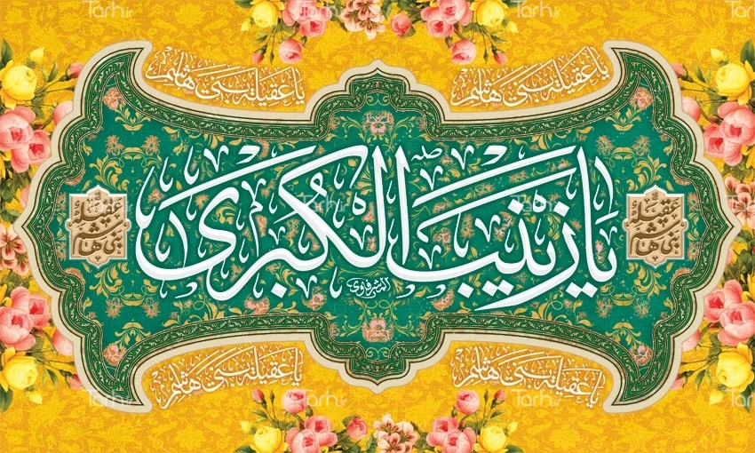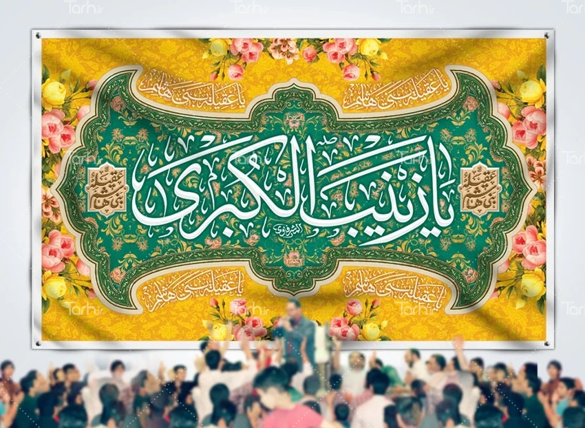 دانلود طرح بنر کتیبه ولادت حضرت زینب با فرمت psd و قابل ویرایش در نرم افزار فتوشاپ به صورت لایه باز توسط تیم طراحان طرح دات آی آر طراحی شده است. در طرح لایه باز بنر ولادت حضرت زینب از تصاویر و المان های با کیفیت و متناسب با استاندارد چاپ استفاده گردیده است. طرح بنر پشت منبری ولادت حضرت زینب شامل تایپوگرافی یا زینب الکبری، عقیله بنی هاشم می باشد که المان های استفاده شده در طرح بنر پشت مداح ولادت حضرت زینب قابلیت ویرایش، جابه جایی و تغییر سایز را دارا بوده و شما می توانید متناسب با سلیقه خودتان طرح دکور میلاد حضرت زینب لایه باز را ویرایش نمایید.