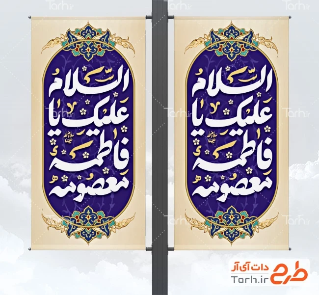 نمونه بنر لمپوست ولادت حضرت معصومه با خوشنویسی السلام علیک یا فاطمه معصومه کد فایل 6105927