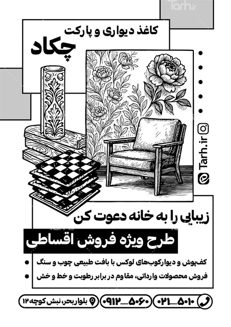 - دسته بندی : تراکت سیاه سفید فروشگاه کاغذ دیواری و پارکت