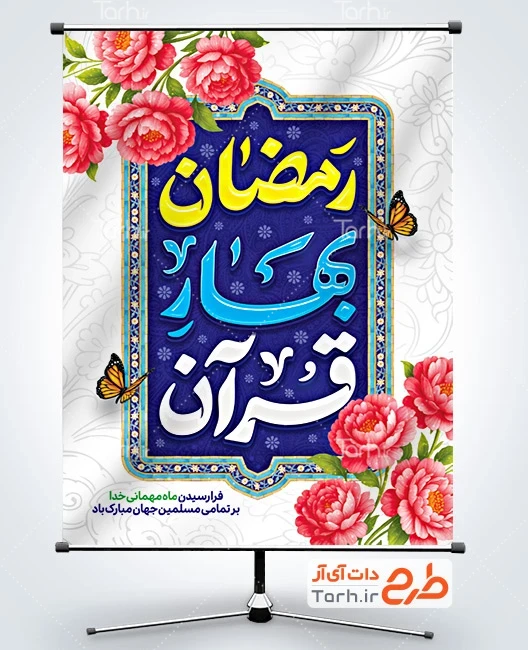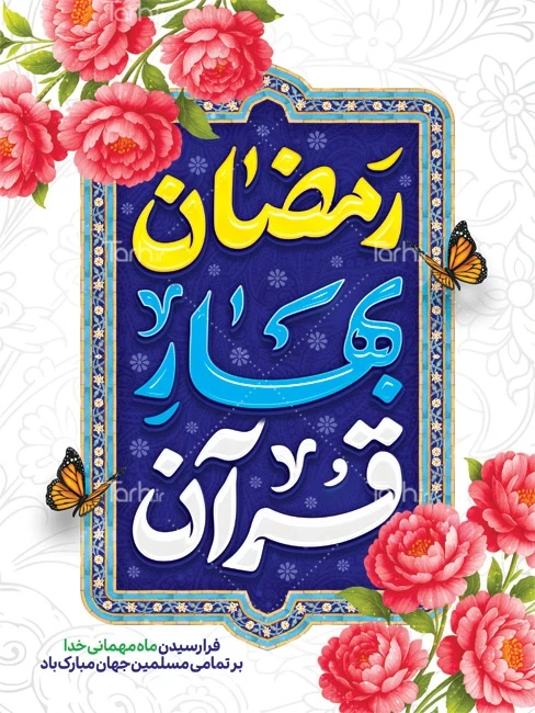 طرح بنر تبریک حلول ماه رمضان با تایپوگرافی رمضان بهار قرآن کد فایل 6127853
