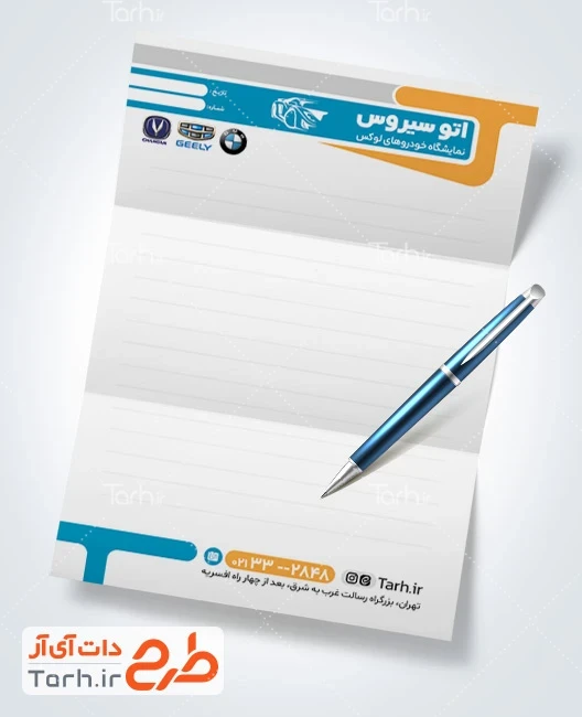 طرح لایه باز سربرگ نمایشگاه ماشین با فرمت psd و قابل ویرایش در نرمافزار فتوشاپ بهصورت لایه باز توسط تیم طراحان طرح دات آی آر طراحی شده است. در طرح لایه باز سربرگ نمایشگاه اتومبیل از المانهای باکیفیت و متناسب با استاندارد چاپ استفادهشده، همچنین نکات مهم در طرح سربرگ خام نمایشگاه اتومبیل مانند رنگبندی، رعایت حاشیه، فاصلهها، فضای کافی برای درج متن، سایز و نوع فونت مناسب طراحی سربرگ و ... رعایت گردیده است. سربرگ لایه باز نمایشگاه اتومبیل شامل وکتور ماشین، لوگو و محل جایگذاری مشخصات میباشد که المانهای استفادهشده در نمونه سربرگ نمایشگاه ماشین قابلیت ویرایش، جابهجایی و تغییر سایز را دارا بوده و شما میتوانید متناسب باسلیقه خودتان طرح سربرگ بنگاه ماشین را ویرایش نمایید، همچنین با تغییر لوگو و متنها میتوانید طرح سربرگ بنگاه خودرو را به طرح سربرگ کسب و کار مد نظر خود شخصی سازی نمایید. در اسناد و نامههای اداری و تجاری، سربرگ به عنوان وسیلهای برای نمایش اطلاعاتی مانند نام و لوگو یک شرکت یا سازمان، عنوان سند، تاریخ، شماره صفحه و اطلاعات تماس ( شماره تلفن، آدرس پستی، وبسایت و ایمیل) به کار میرود. این اطلاعات به دریافتکننده کمک میکند تا به راحتی با شرکت یا سازمان تماس بگیرد یا از منابع اطلاعاتی بیشتری بهرهبرداری کند.