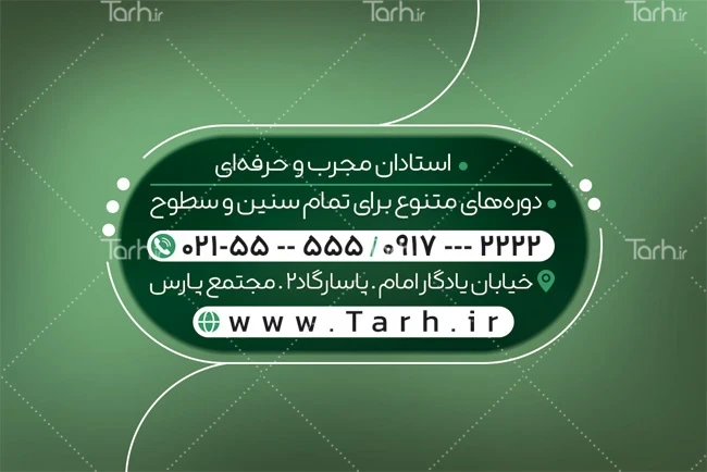 ابعاد قابل چاپ طرح لایه باز کارت ویزیت آموزش نوازندگی و کاربرد آن