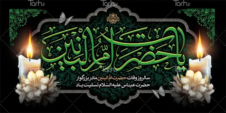 طرح پلاکارد رحلت ام البنین با خوشنویسی یا حضرت ام البنین کد فایل 6234198