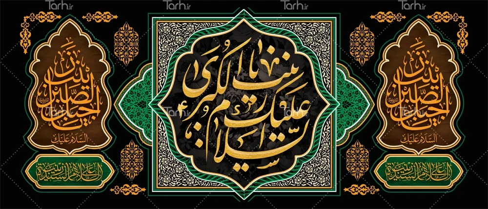 طرح دکور پشت سن رحلت حضرت زینب با خوشنویسی السلام علیک یا زینب الکبری کد فایل 6245091