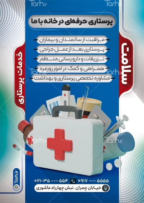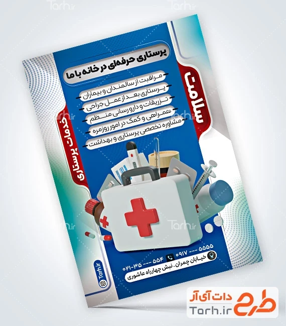 طرح تراکت آماده خدمات پرستاری و پزشکی با قابلیت ویرایش المان ها کد فایل 6273159