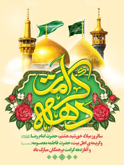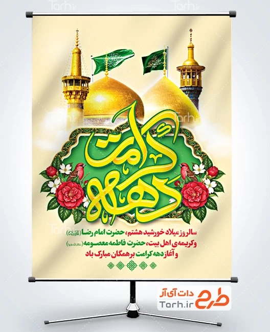 طرح آماده پوستر دهه کرامت با فرمت psd و قابل ویرایش در نرم افزار فتوشاپ به صورت لایه باز توسط تیم طراحان طرح دات آی آر طراحی شده است. در طرح بنر دهه کرامت از تصاویر و المان های با کیفیت و متناسب با استاندارد چاپ استفاده گردیده است. طرح پوستر دهه کرامت شامل خوشنویسی دهه کرامت ، عکس گنبد و گلدسته حرم حضرت معصومه، حرم امام رضا و وکتور گل می باشد که المان های استفاده شده در طرح لایه باز دهه کرامت قابلیت ویرایش، جابه جایی و تغییر سایز را دارا بوده و شما می توانید متناسب با سلیقه خودتان طرح لایه باز دهه کرامت را ویرایش نمایید.