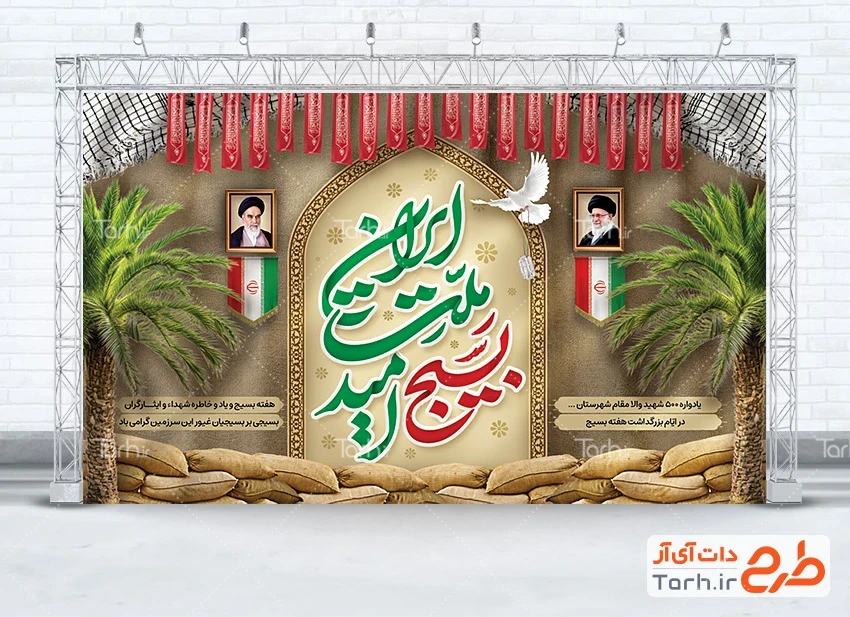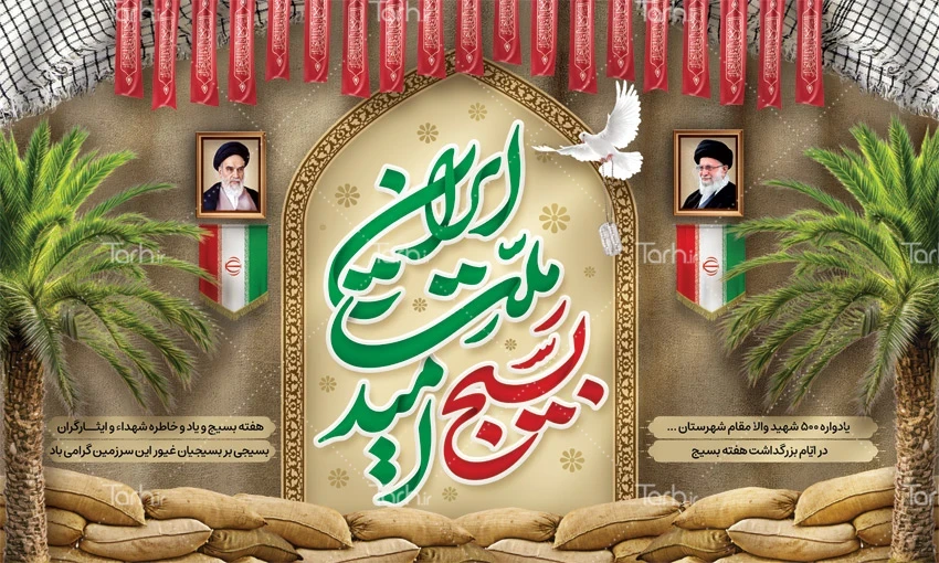 فایل لایه باز بنر هفته بسیج با تایپوگرافی بسیج امید ملت ایران کد فایل 6291453
