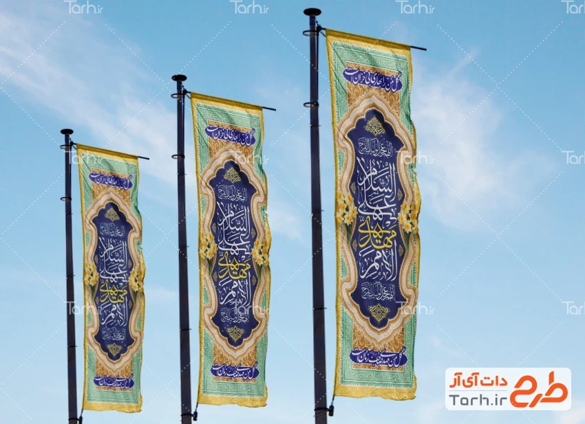 طرح خام پرچم عمودی میلاد امام زمان با قابلیت ویرایش المان ها کد فایل 6294710