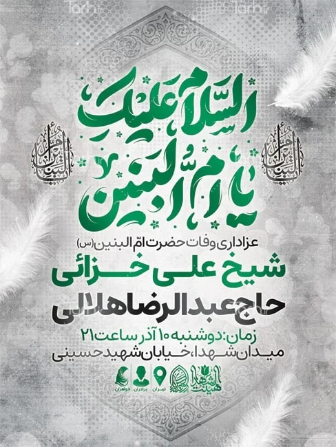 ابعاد قابل چاپ طرح لایه باز اطلاعیه وفات ام البنین و کاربرد آن