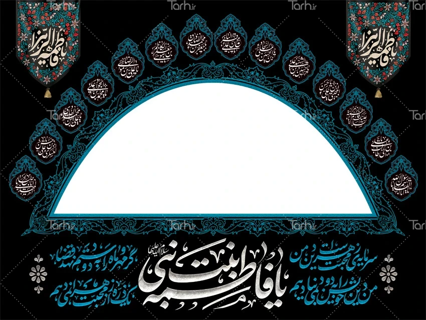 طرح لایه باز کتیبه پشت منبری فاطمیه با فرمت psd و قابل ویرایش در نرم افزار فتوشاپ به صورت لایه باز توسط تیم طراحان طرح دات آی آر طراحی شده است. در طرح لایه باز کتیبه شهادت حضرت فاطمه الزهرا از تصاویر و المان های با کیفیت و متناسب با استاندارد چاپ استفاده گردیده است. کتیبه پشت منبر فاطمیه شامل تایپوگرافی یا فاطمه بنت نبی و خوشنویسی سرمایۀ محبت زهراست دین من، من دین خویش را به دو دنیا نمیدهم و خوشنویسی اسامی چهارده معصوم می باشد که المان های استفاده شده در طرح کتیبه پشت منبری فاطمیه قابلیت ویرایش، جابه جایی و تغییر سایز را دارا بوده و شما می توانید متناسب با سلیقه خودتان طرح بنر ایام فاطمیه را ویرایش نمایید.