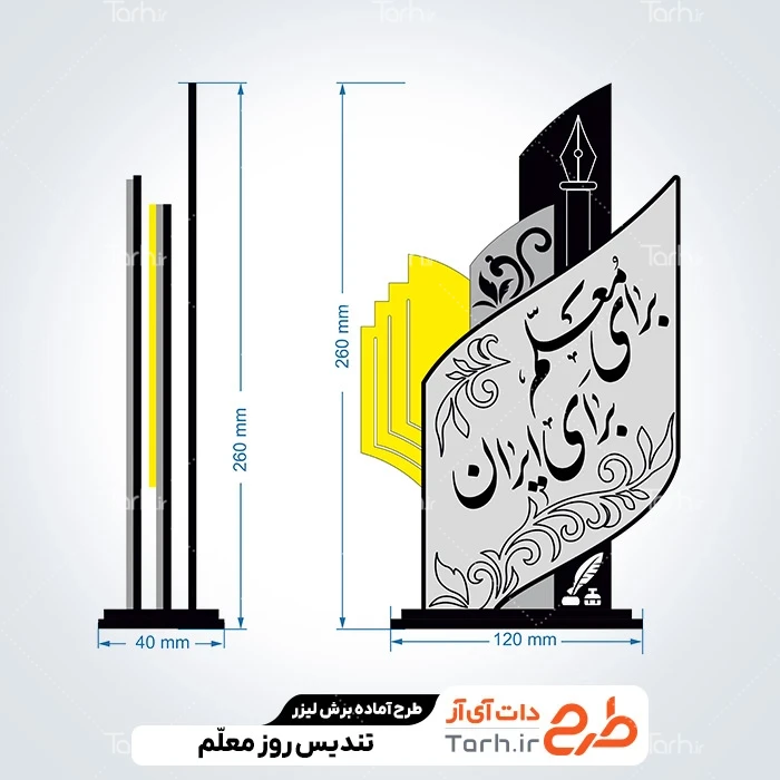 فایل لیزر تندیس معلم با نرم افزار Corel Draw به صورت لایه باز و قابل ویرایش توسط تیم طراحان طرح دات آی آر طراحی شده است. در طرح لیزر تندیس روز معلم نکات مهم طراحی لیزر تندیس مانند رعایت ضخامت چوب، ابعاد استاندارد طرح و چیدمان درست برای کمترین پرتی رعایت گردیده است. طرح برش لیزری تندیس روز معلم آماده اجرا توسط دستگاه های برش، سی ان سی (CNC)، حکاکی لیزر و حکاکی روی چوب میباشد. شما میتوانید از طرح تندیس لیزری روز معلم جهت تولید انواع تندیس و استند روز معلم به عنوان هدیه در روز معلم استفاده کنید.